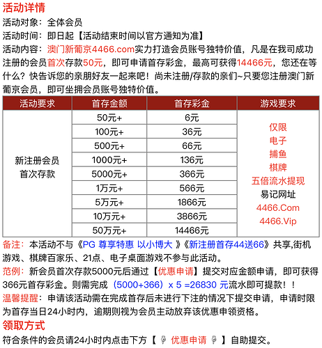 活动内容:澳门新葡京4466.com实力打造会员账号独特价值,2025年想要富,新葡京帮您找出路,注册重赏火爆来袭!新会员注册,即可申请首存44元送66元,只要余额达到500元即可提款,最高提款金额无限制,赠送人数无上限